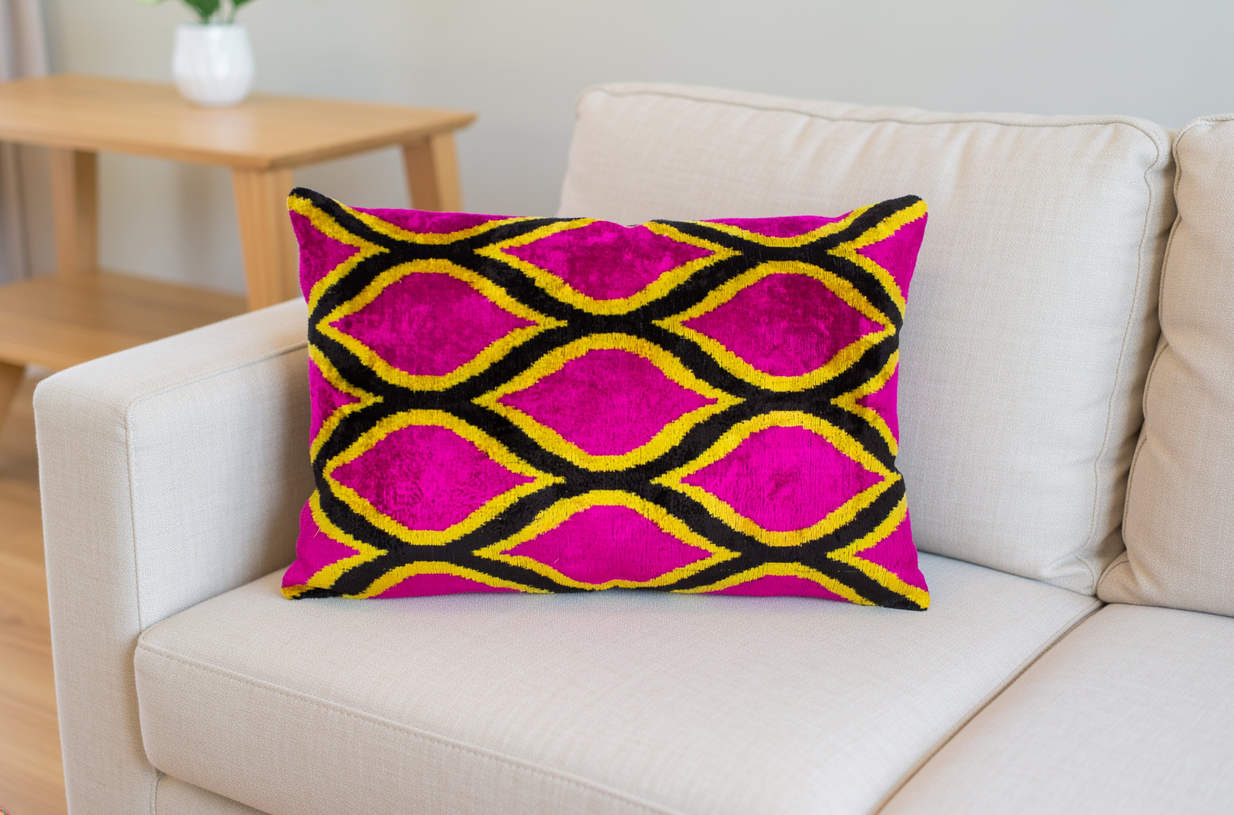 The dyed yarns are then woven on traditional looms. During the weaving process, the yarns are brought together, and the ikat patterns emerge on the fabric's surface.